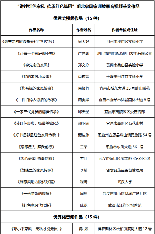 为在全社会营造爱党、爱国、爱家的良好氛围,前期,省文明办在全省范围内开展了“讲述红色家风传承红色基因”湖北家风家训故事音视频征集活动,省局报送的李婧家庭《战疫里的家风传承》获得优秀奖。