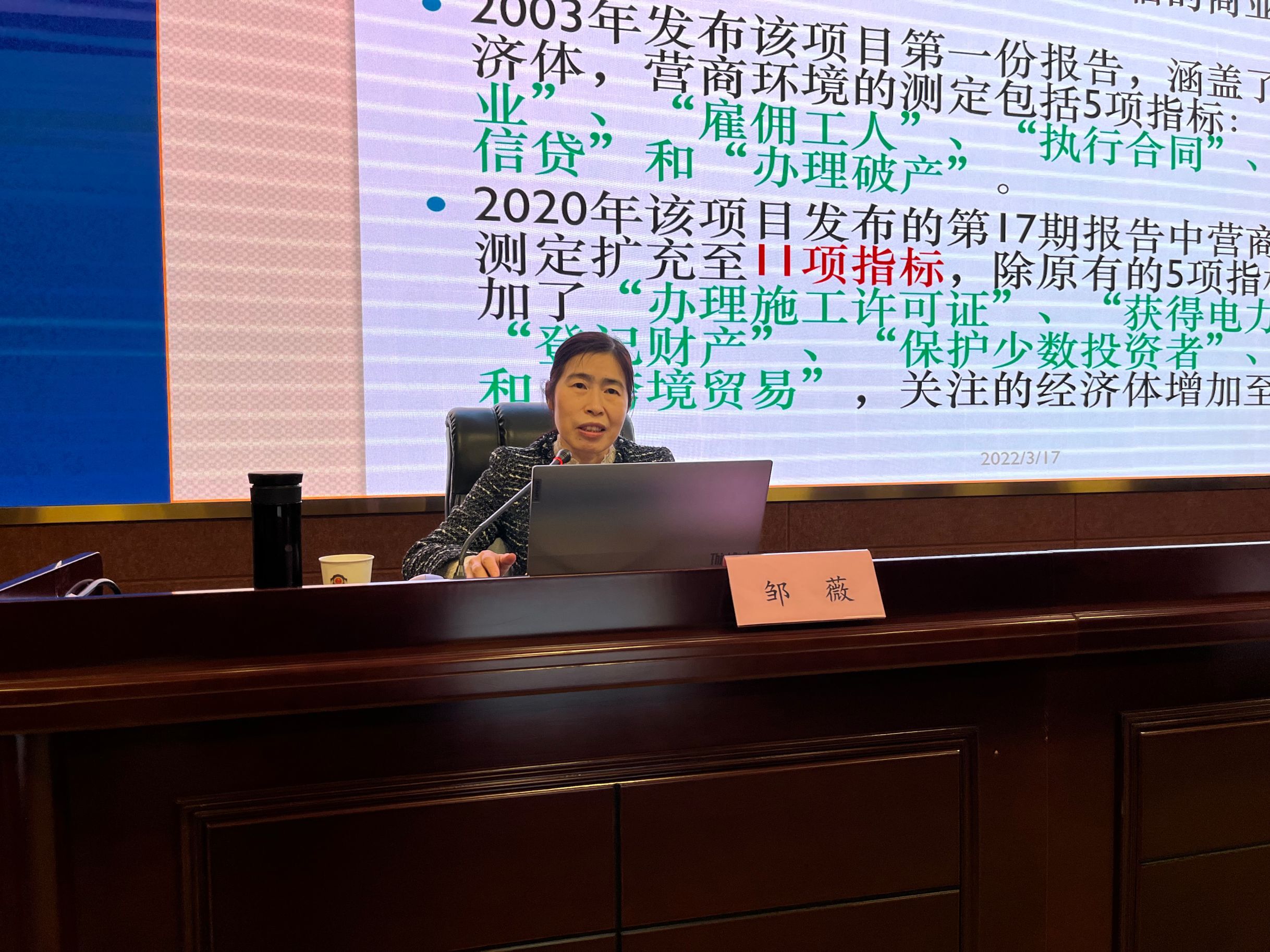 邹薇围绕《营商环境评估与优化营商环境的湖北对策》这一主题,系统地阐述了什么是营商环境、世界各国营商环境现状、如何评估营商环境、当前湖北优化营商环境工作的重点和主要问题,提出了优化营商环境的湖北对策,为全局系统干部开拓了眼界,打开了思路,对进一步优化营商环境,大力推动湖北生物医药产业高质量发展具有非常重要的启发和指导意义。