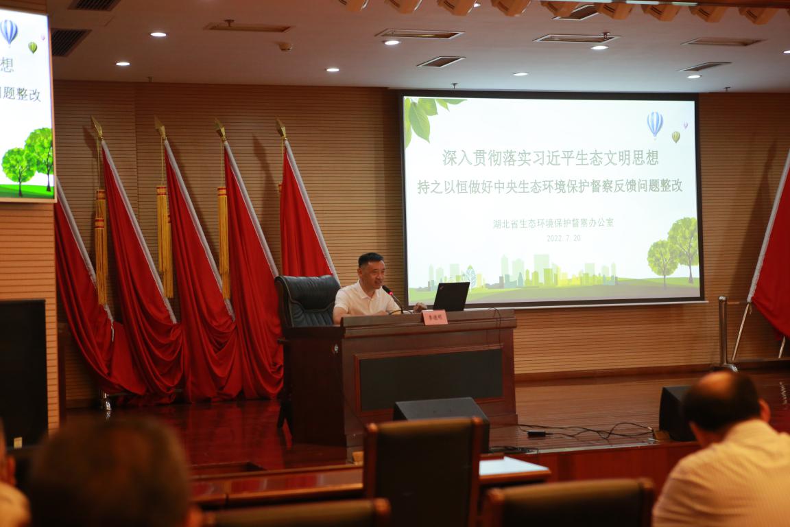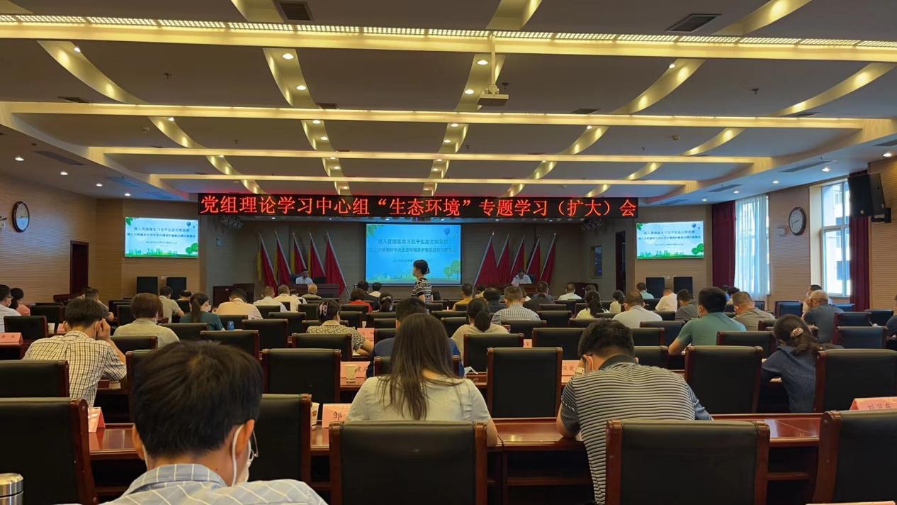 为进一步学深悟透习近平生态文明思想,深入学习贯彻习近平总书记考察湖北重要讲话精神,推进落实省第十二次党代会部署,做好第二轮中央生态环境保护督查反馈问题整改工作,7月20日,省局党组组织召开理论学习中心组“生态环境”专题学习(扩大)会,党组中心组成员,全体机关干部和武汉分局、直属单位主要负责人参加。局党组成员、副局长刘文斌主持宣讲会。