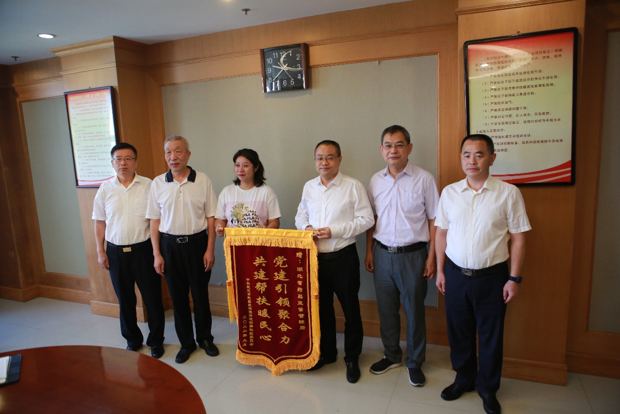 9月16日,武昌区杨园街办事处副主任胡俊,四美社区党委书记王瑶一行走访省局,对省局对口联系四美社区工作、倾情帮扶社区提升基层治理水平予以高度评价和衷心感谢,并送来“党建引领聚合力、共建帮扶暖民心”的锦旗。省局党组书记、局长熊享涛,一级巡视员傅建伟会见胡俊一行。