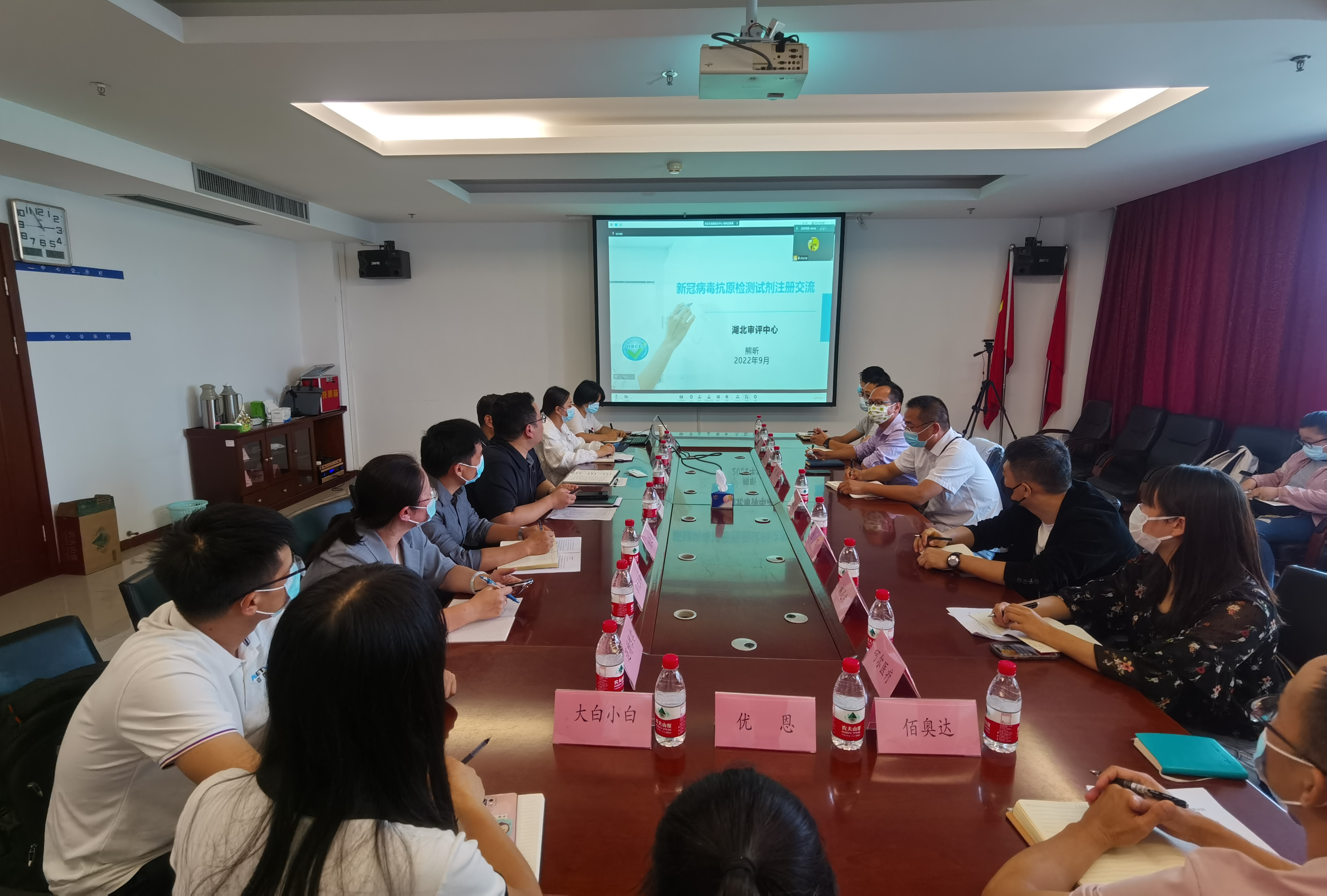 会上,审评中心邀请国家器审中心专家就新冠抗原检测试剂注册技术审评要点、立卷审查常见问题进行重点讲解并分享了新冠检测试剂产品质量管理体系中重点关注项。会后,邀请新冠抗原试剂获证企业武汉明德生物及武汉生之源代表与在研企业交流经验,审评中心“店小二”服务团进行集中答疑。