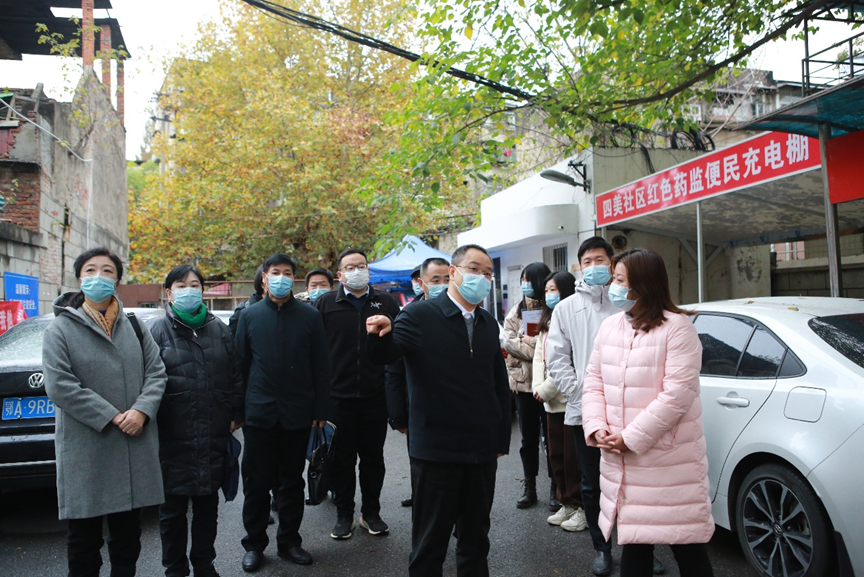 在四美社区,熊享涛、王璐璐察看了省局援建项目——智能充电停车棚、健康驿站,听取了街道、社区和下沉单位防控工作情况汇报和帮扶建议,并向下沉党员和社区干部表示问候。熊享涛鼓励大家要坚定信心,下定决心,保持耐心,传递爱心,扛实防控责任。他强调,要完整、准确、全面学习贯彻落实习近平总书记关于疫情防控工作的重要指示批示精神和党中央决策部署,坚持第九版防控方案、落实二十条优化措施不动摇、不走样,保持战略定力,强化责任担当,科学精准做好疫情防控各项工作。他要求,要巩固提高“下基层、察民情、解民忧、暖民心”活动效果,工作队和下沉党员要结合省局职能推动各项助民纾困、民生保障政策措施落地见效,充分运用“共同缔造”理念,解决社区反映突出的问题和人民群众急难愁盼问题,切实增强人民群众的获得感、幸福感、安全感,着力保持平稳健康的社区环境,保护人民生命安全和身体健康,缔造美好生活。按照省直机关工委党员干部下沉社区最新安排,王璐璐同志作为下沉四美社区工作队长与社区党组织进行对接,审评中心作为四美社区下沉工作队牵头单位与原工作队省药检院交接了对口帮扶相关工作。
