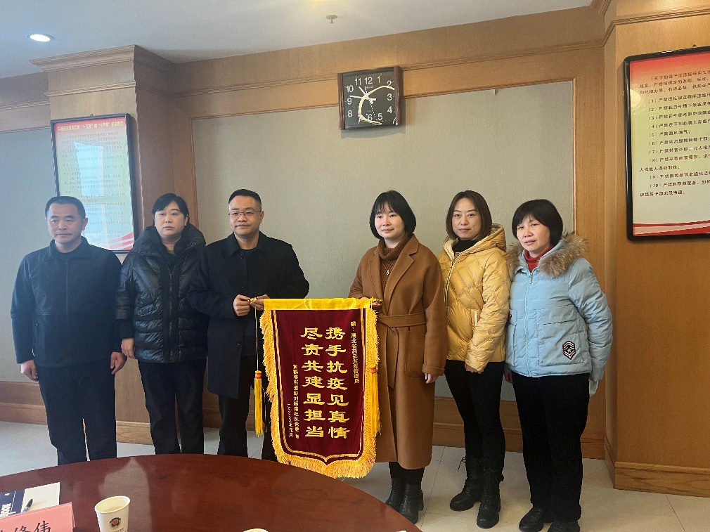 2月7日,黄鹤楼街道程康平主任一行专程到省局送锦旗,对省局在疫情严峻复杂的关键时刻,克服人员不足,与社区人员一同在一线抗击疫情,解决社区物资匮乏等问题表示衷心感谢。锦旗写着:“携手抗疫见真情,尽责共建显担当”。