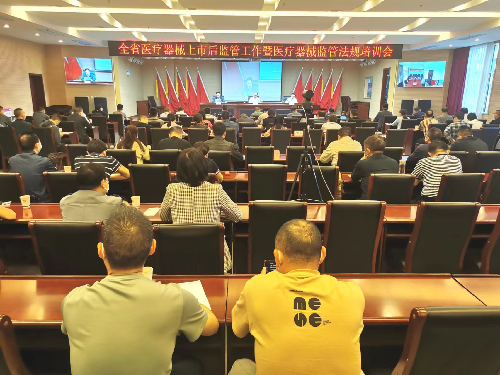 各市州市场监管局,省局办公室、政策法规处、注册管理处、医疗器械化妆品监管处、行政审批处、稽查执法处以及省局各分局、省局审评中心、检查中心、药品(医疗器械)不良反应监测中心、医疗器械质量监督检验研究院等100余名监管人员在省局主会场参加会议;全省第二、三类医疗器械注册人、受托生产企业的法定代表人(企业负责人)和管理者代表600余人在省局各分局分会场参加培训。