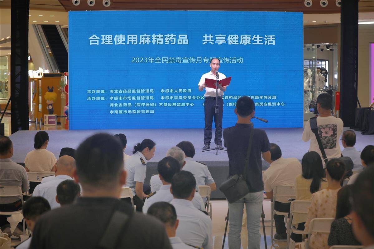 6月26日上午,湖北省药品监督管理局、湖北省药品(医疗器械)不良反应监测中心会同孝感市市场监督管理局、孝感市禁毒委员会办公室、孝感市药品(医疗器械)不良反应监测中心、孝南区市场监督管理局共同举办的2023年全民禁毒宣传月“合理使用麻精药品 共享健康生活”专题活动启动仪式在孝感吾悦广场举行。