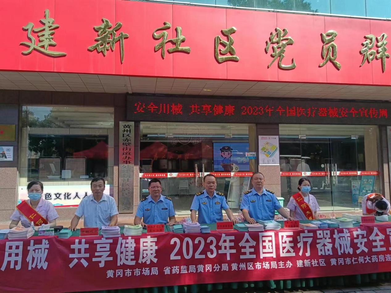 为认真贯彻落实2023年全省医疗器械安全宣传周活动部署,7月10日上午,黄冈分局联合市市场监督管理局、黄州区市场监督管理局,在建新社区党员群众服务中心开展“安全用械进社区”活动。