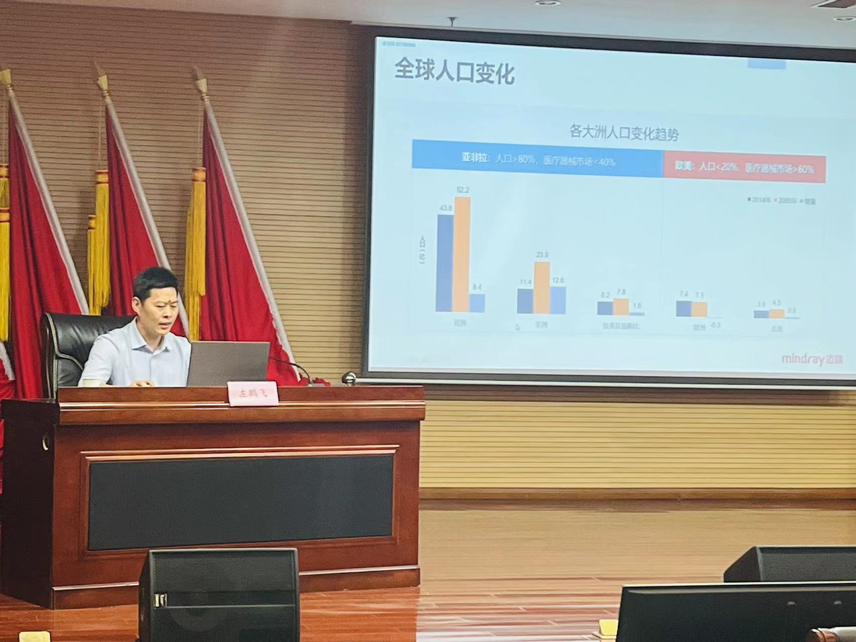 左鹏飞运用自己掌握的第一手医疗器械行业资讯,结合长期从事医疗器械研发和管理实践,从全球医疗卫生支出状况、全球医疗器械行业状况、医疗器械行业机会和挑战、医疗器械行业发展趋势、医疗器械创新与监管指导等方面,系统、客观地对我国医疗器械行业进行了深度剖析,详细分析了医疗器械行业发展将面临的机遇和挑战。讲座主题鲜明、语言生动、内涵丰富、案例贴切,进一步加深了药监干部对医疗器械行业未来发展前景的认识,为加强医疗器械科学监管、促进医疗器械产业高质量发展,推动湖北生命健康产业加速迈向“万亿级”,有着重要的启发和指导意义。
