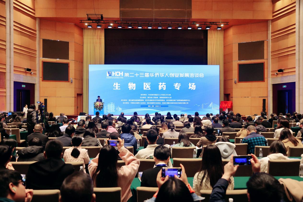 11月17日,2023华侨华人创业发展洽谈会生物医药专场在武汉东湖国际会议中心隆重举行。专场期间举办了“华侨华人生物医药创新创业光谷基地”授牌、生物医药项目签约、2023华侨华人生物医药合作需求信息发布、生物医药院士专家论坛等多个活动,吸引了来自美国、法国、英国等多个国家和地区的海外代表、港澳台地区代表、国内生物医药领域企业代表共300多名嘉宾参加。省人民政府副秘书长赵俊出席开幕式并讲话,省委统战部副部长李涛,省药监局党组书记、局长熊享涛,武汉东湖新技术开发区党工委副书记王晓林,武汉国家生物产业基地建设服务中心主任丁慧琛等领导参加活动。
