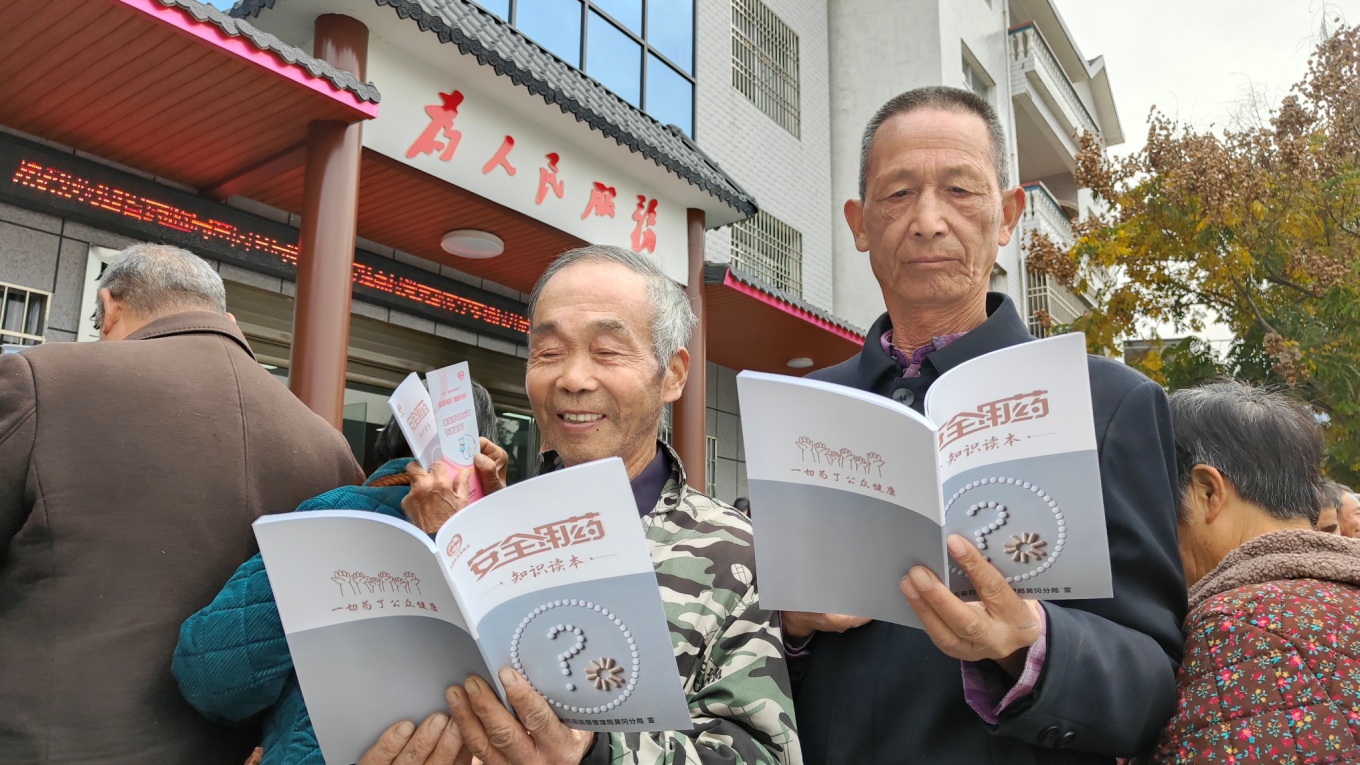 活动过程中,通过播放安全用药和湖北省药械化不良反应个人直报平台宣传片、悬挂横幅、摆放宣传展板、发放宣传资料和小礼品、科普知识宣讲、过期药品回收等方式,面对面向村民普及药品安全常识及注意事项,共筑药品安全社会共治的良好局面。此外,现场还设置了健康咨询、免费测量血压和血糖专区,针对高血压和高血糖等基础疾病患者予以用药指导,获得了村民的一致好评。