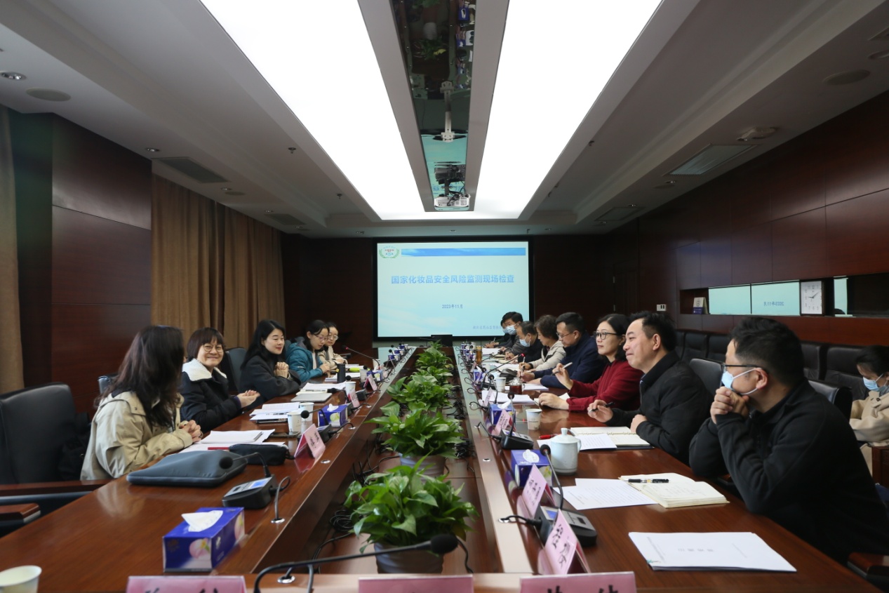 省局向检查组汇报了我省2023年国家化妆品安全风险监测工作总体情况、发现的化妆品安全风险问题、下一步工作计划及改进思路。检查组通过听取汇报、座谈交流、查阅资料以及现场查看等方式进行了检查,并就国家化妆品安全风险监测工作开展调研,听取有关工作意见及建议。