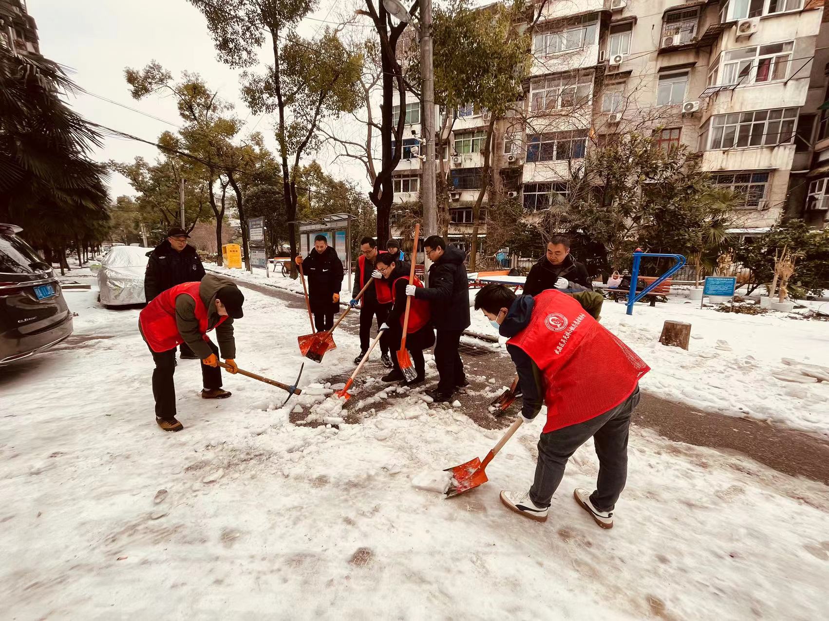 武汉再一次遭遇罕见大雪冻雨天气,为保障广大居民群众出行安全,2月23日,由省药监局器械中心、药品中心、器械院组成36人突击队,第一时间赶往对口帮扶的四美社区,协助开展铲雪除冰行动。