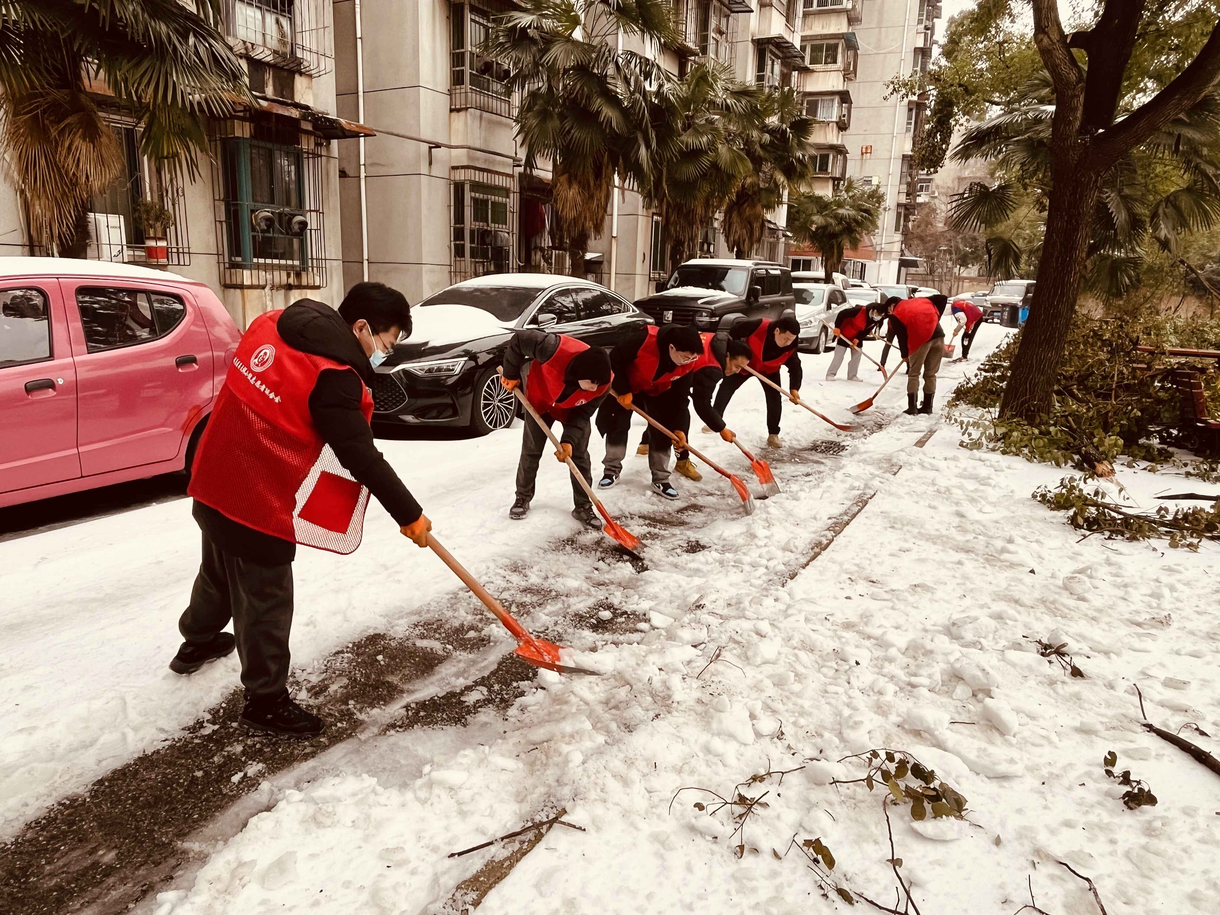 在铲雪除冰行动中,大家手持锄头、铁锹,分三组在楼栋交汇口、居民楼前清除路面积雪和冰层,清理清通群众出行“最后一公里”,用暖心行动促畅通、保安全。