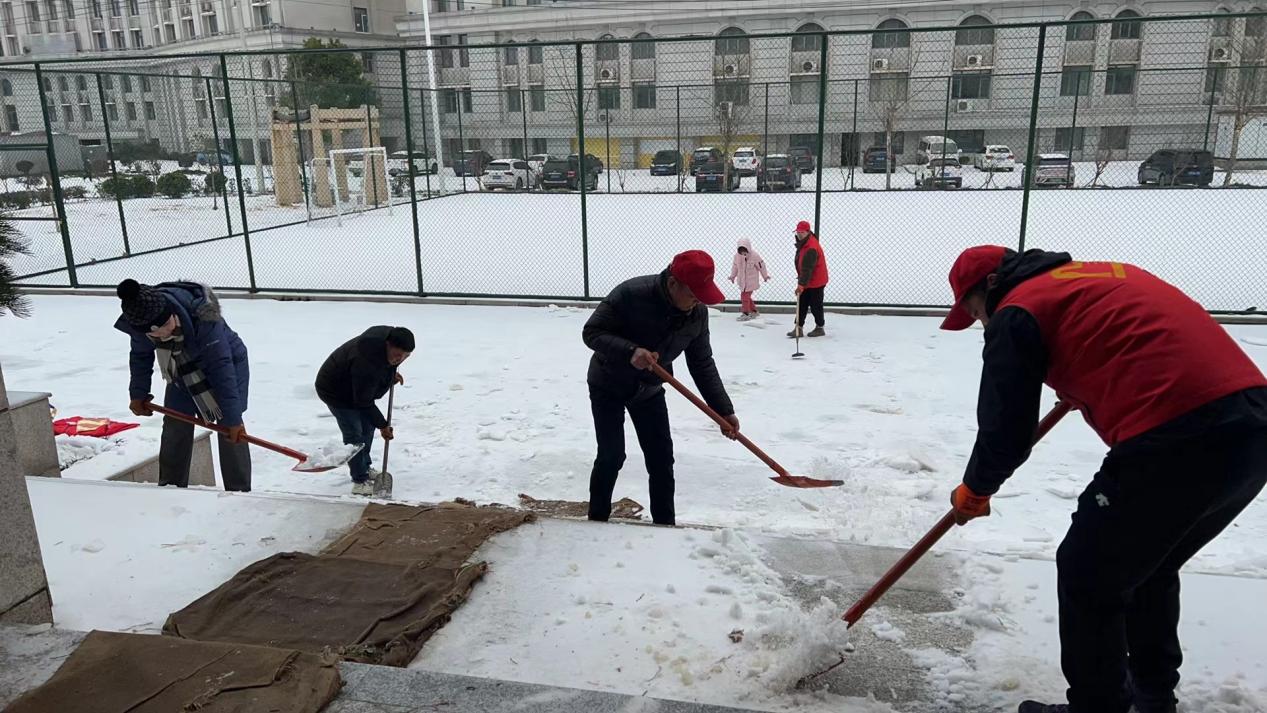 为了应对低温雨雪冰冻天气,汉江分局党支部认真落实《关于在防范应对低温雨雪冰冻灾害中充分发挥基层党组织战斗堡垒作用和广大党员先锋模范作用的通知》精神,分局党支部书记何淑君同志带领分局全体党员同志开展铲雪除冰行动,大家不畏严寒冲锋在前,利用铁锹等工具,齐心协力铲通“勤政一路”主干道路、清除了分局办公楼楼前楼后积雪,最大限度做好地面除雪防滑,为办事群众出行清出一条“平安”路。