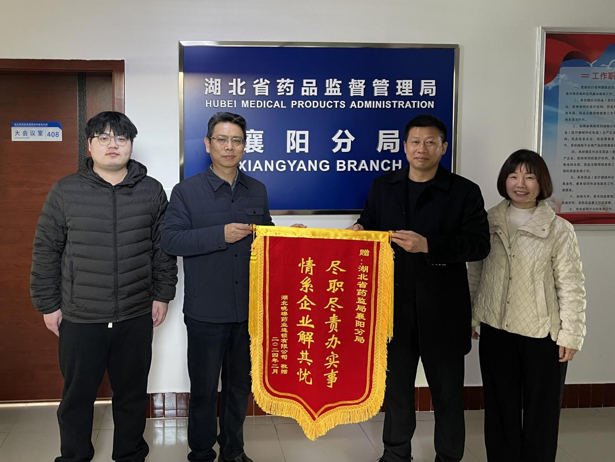 近日,湖北晓琳药业连锁有限公司向湖北省药品监督管理局襄阳分局赠送了“尽职尽责办实事,情系企业解其忧”的锦旗和感谢信,对襄阳分局在该企业新增仓库现场检查工作中给予的支持表示感谢。