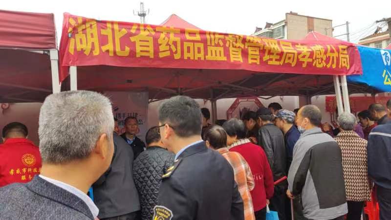 4月17日上午,在安陆市李店镇综合文化站广场,孝感分局与孝感市政协、孝感市市场监管局共同组织开展药械法制宣传进乡村活动。
