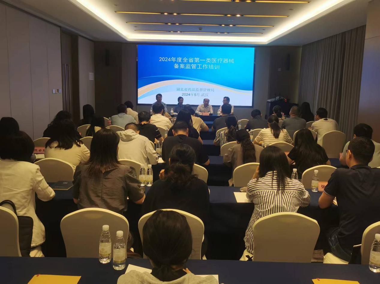 为贯彻落实好国家药监局第一类医疗器械备案管理工作要求,持续提升我省第一类医疗器械备案管理工作水平,切实保障公众用械安全。5月9日,省局在武汉举办全省第一类医疗器械备案管理工作培训班。省局党组成员、副局长贡勇斌出席开班仪式并讲话,省局相关处室、直属单位、各市州市场监管局、行政审批局相关人员参加了培训。