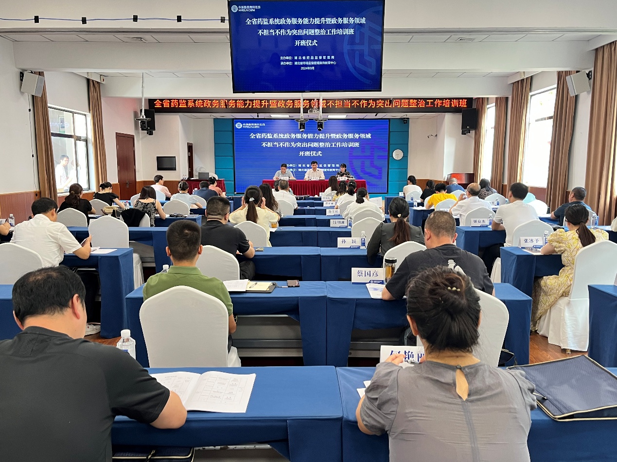 为贯彻落实党中央、国务院和省委、省政府关于“高效办成一件事”改革决策部署,提升我省药品、化妆品、医疗器械政务服务能力和水平,深化“高效办成一件事”改革,扎实推进政务服务领域不担当不作为突出问题整治,9月10日至11日,省局在汉举办全省药监系统政务服务能力提升暨政务服务领域不担当不作为突出问题整治工作培训班。加快部署和推进“高效办成一件事”重点改革事项,认真分析当前全省药监系统审批改革面临的形势,聚力落实改革任务,提高行政效能。全省各市(州)市场监管局、行政审批局47名负责药品、医疗器械、化妆品审批工作的业务骨干参加此次培训。
