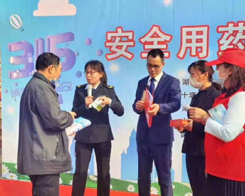 3月15日,省局十堰分局组织市中医院、用心人、国人、国控济安大药房连锁有限公司等单位走进十堰经济技术开发区白浪街办马路社区开展安全用药宣传活动。