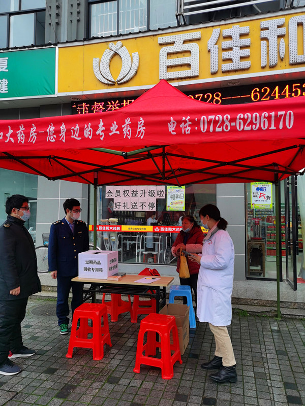 为宣传正确使用和合理储存药品的方法,提高公众对使用过期药品和随意丢弃过期药品造成危害的认识,潜江市场监管局坚持“以人为本、服务社会、保障安全”的要求,自3.15消费者权益日以来,与湖北百佳和大药房连锁有限公司联合开展了主题为“正确处理过期药,抵制假药、劣药、回收药,保证人民安全用药,健康生活”的用药安全宣传活动。湖北百佳和大药房连锁有限公司作为活动承办方在潜江市园林城区、广华等9个乡镇设立了12个连锁门店作为过期药品回收点。
