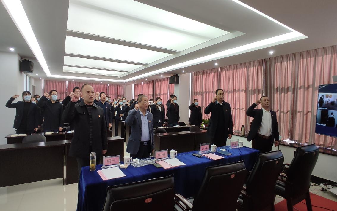 湖北海王医药集团党支部书记、海王生物副总裁兼湖北海王医药集团总裁张凡参加会议,企业各部门党员干部、入党积极分子、业务骨干等60余人现场参会,海王集团所属15家子公司相关负责人和党员代表近200人以视频形式线上参会。集团党支部副书记张勇主持活动并带领全体参会人员重温入党誓词。