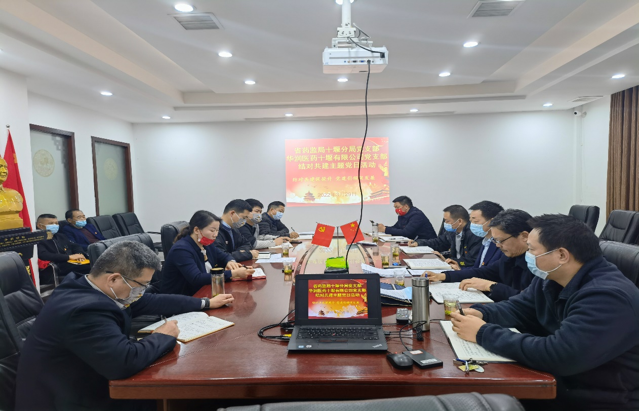全体党员重温入党誓词、学习习近平总书记在中央党校中青年干部培训开班式上的讲话、学习省局优化营商环境促进医药产业高质量发展若干措施、学习湖北省药品安全专项整治行动实施措施。华润支部书记介绍企业党支部的建设情况,并就监管及药品安全等方面提出了需要解决的难题。