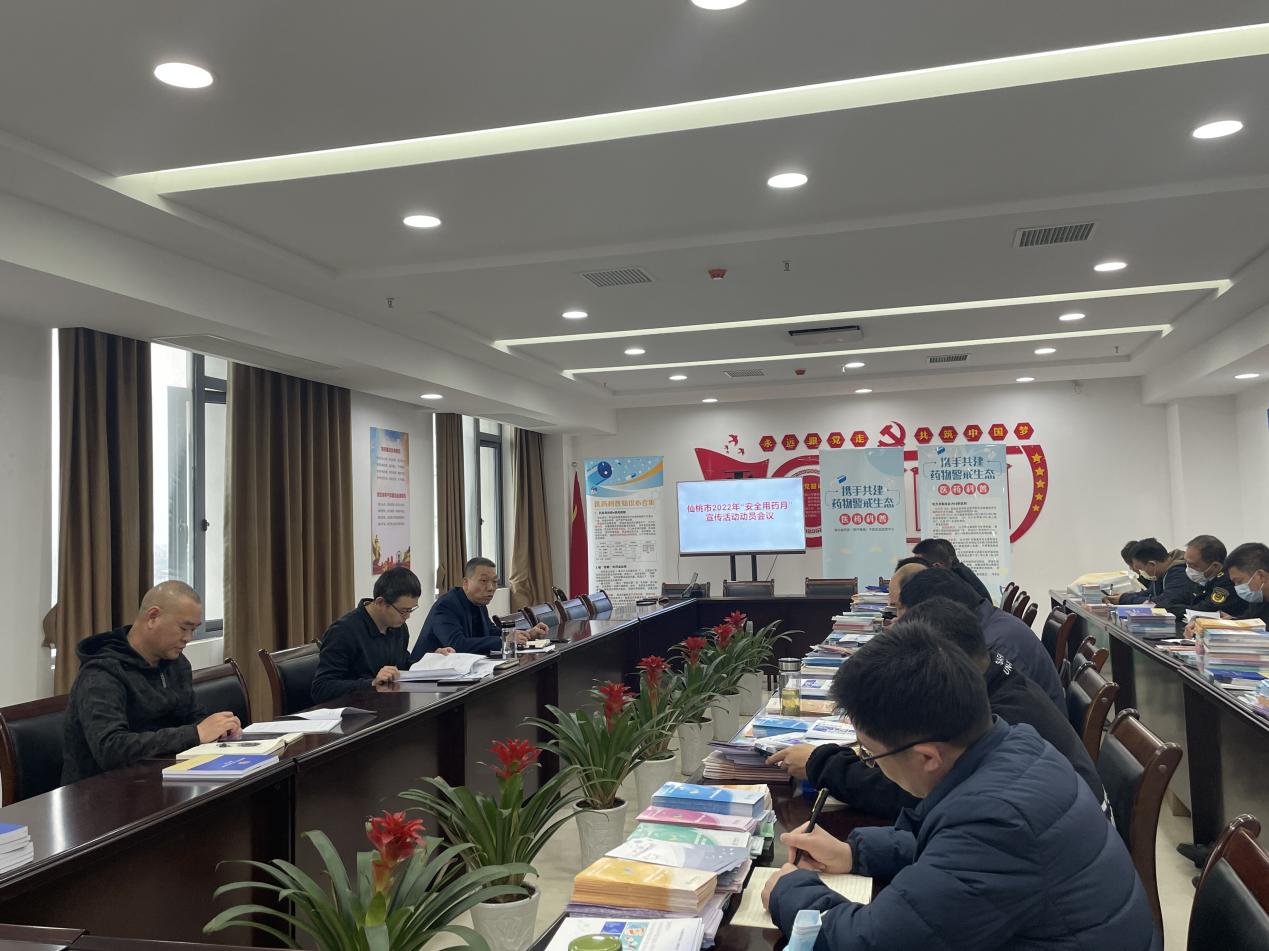 会上,市局总工程师李祥宣读了仙桃市2022年“安全用药月”活动方案,并对各项活动进行部署。一是加大药品安全用药月宣传。联系《仙桃周刊》,确定发行“安全用药 同心同行”主题专刊。印制宣传活页20000余份,分发至各市场监管所。宣传发动市局全体人员、“两品一械”生产经营使用单位从业人员以及社会公众参与“两品一械” 法律法规和科普知识网络竞赛活动。二是组织开展无害化集中销毁假劣药品活动。收集近年来市局稽查办案中收缴的假冒伪劣产品,集中进行无害化销毁,展示药品安全专项整治成果。三是做好送药品安全科普知识进农村、进社区活动,要求辖区市场监管所联合辖区医疗机构、执业药师深入农村、社区开展药品安全科普宣传活动,认真开展第五届“寻找身边最美药师”、“携手共建药物警戒生态”专题活动。