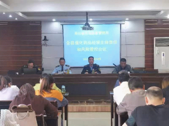 4月12日,英山县强化风险管控落实药品经营企业主体责任暨法规培训会议在英山县局六楼会议室召开。局药品分管领导,综合执法大队负责人,药品中队、药化械股全体人员,全县药品零售连锁企业、单体药店负责人、质量负责人共 78人参加会议。
