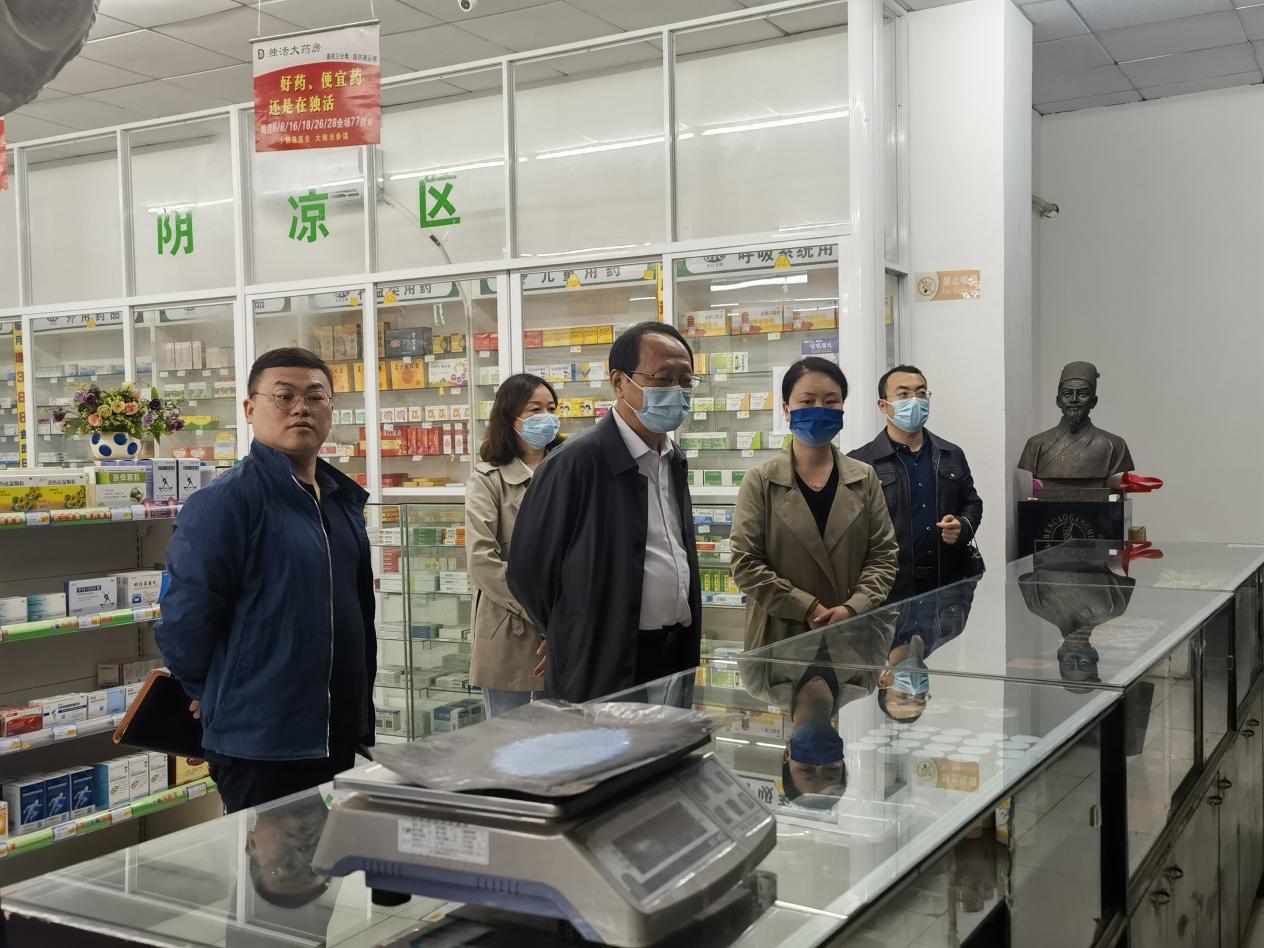 4月11日,省疫情防控指挥部新冠疫情“乙类乙管”常态化防控督查组一行,在襄城区药店检查退热、止咳、抗生素、抗病毒及止泻等药品储备、供应情况,副区长朱崎锦陪同检查。