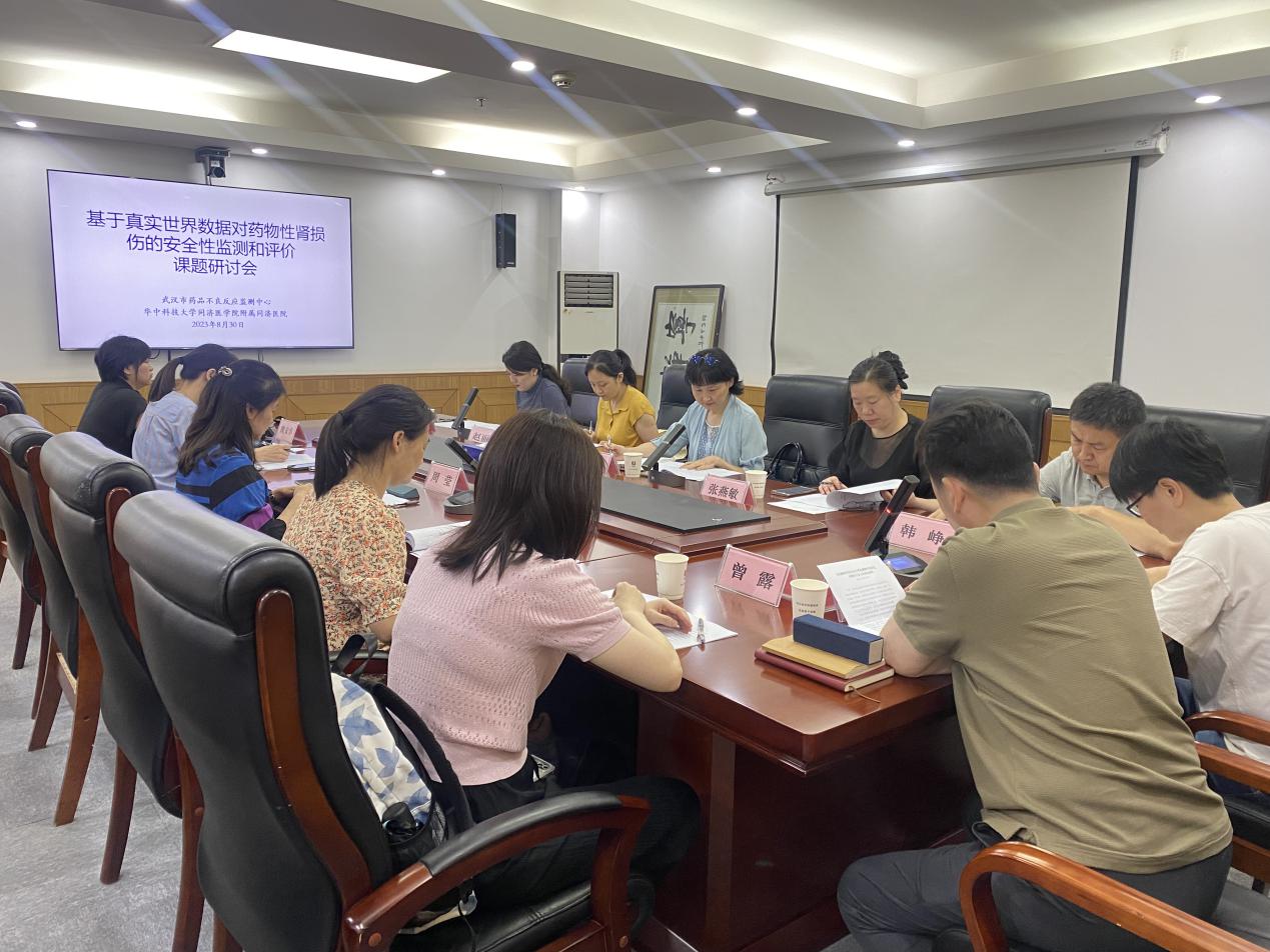 为紧密结合药物警戒工作发展需求,促进监测工作纵深发展,市监测中心与华中科技大学同济医学院附属同济医院合作开展《基于真实世界数据对药物性肾损伤的安全性监测和评价研究》课题研究。8月30日,为推进课题顺利开展,市监测中心邀请湖北省药品(医疗器械)不良反应监测中心、华中科技大学同济医学院附属同济医院、华中科技大学同济医学院、湖北省第三人民医院、武汉市第一医院、武汉市第三医院的专家及课题组成员等召开开题研讨会。