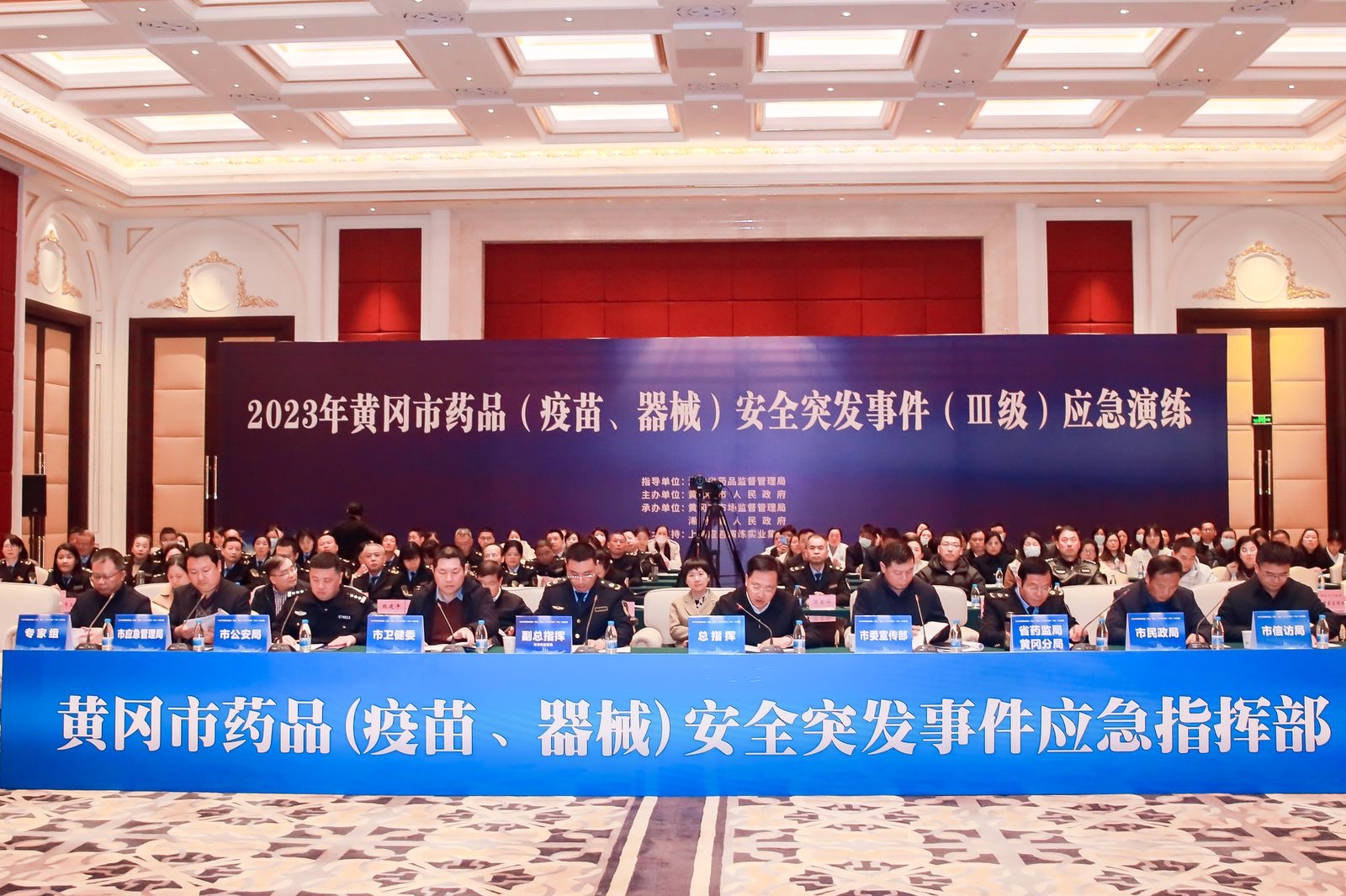 为进一步健全完善我市药品安全突发事件应急体系,锻炼、提高药品安全突发事件应对处置能力,11月13日,黄冈市举办药品(疫苗、器械)安全突发事件应急(Ⅲ级)应急演练。省药监局党组成员、副局长陈静出席活动并致辞,省药监局办公室、省药品(医疗器械)不良反应监测中心相关负责同志参加活动并点评。该市市场监管局,省药监局黄冈分局主要负责同志以及市直相关部门分管负责同志参加活动。各县(市、区)药品监管执法人员、全市涉药企业单位同步线上观摩。
