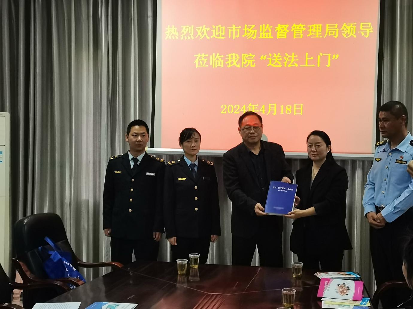 为进一步提升基层医疗机构药品质量安全水平,贯彻“服务走在监管前”工作理念,4月18日,老河口市市场监督管理局相关负责人带领市局药品股、械妆股及洪山嘴市场监管所相关工作人员,主动作为,到洪山嘴镇卫生院开展送法上门服务活动,为基层医疗机构送培训、送服务。