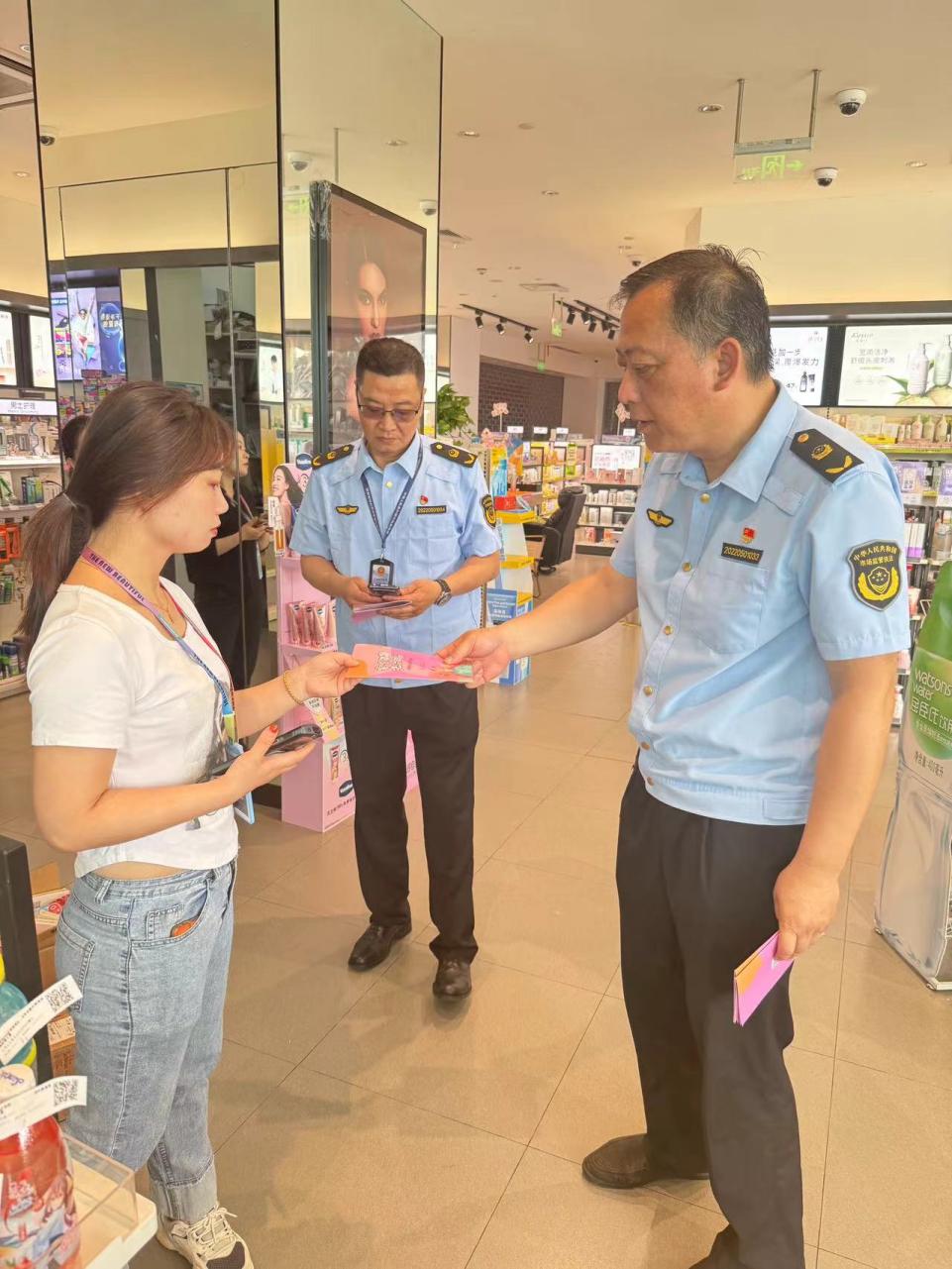 同时,县局还对辖区内美容院、美发店、美甲店、美妆店同步开展检查和宣传,向经营户普及《化妆品监督管理条例》《化妆品不良反应监测管理办法》等,帮助经营户进行自查自纠,提升经营户对于合法经营化妆品的科学认知,通过查看化妆品经营资质、产品质量、索证索票等方面,规范化妆品机构经营行为,确保化妆品市场秩序稳定。