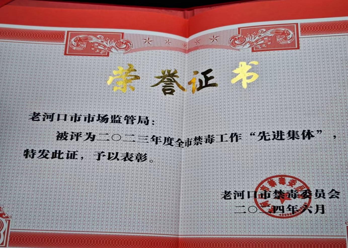 6月5日,老河口市举行2024年禁毒宣传月启动仪式。老河口市市场监管局荣获2023年度全市禁毒工作“先进集体”荣誉称号,市场监管局参加启动仪式并作典型交流。