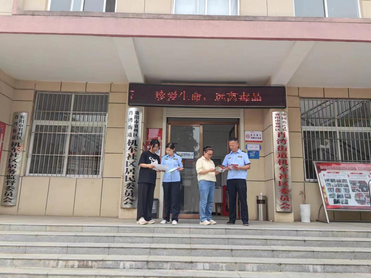 二是进社区。襄州区市场监管局深入社区积极开展禁毒知识宣传活动。在襄州区肖湾街道机车社区,向社区工作人员及前来办事的群众发放禁毒宣传手册,宣传合理用药和药物滥用知识;并将部分宣传册放在社区服务中心前台显眼的位置,供办事群众取阅。