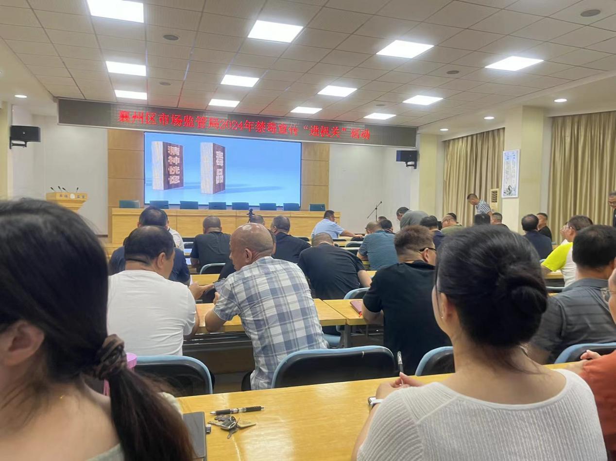 五进单位。按照禁毒宣传活动要求,6月20日起,襄州区市场监管局在单位二楼电子屏滚动播放禁毒宣传标语,并组织全体干部职工集中观看禁毒宣传公益短片。