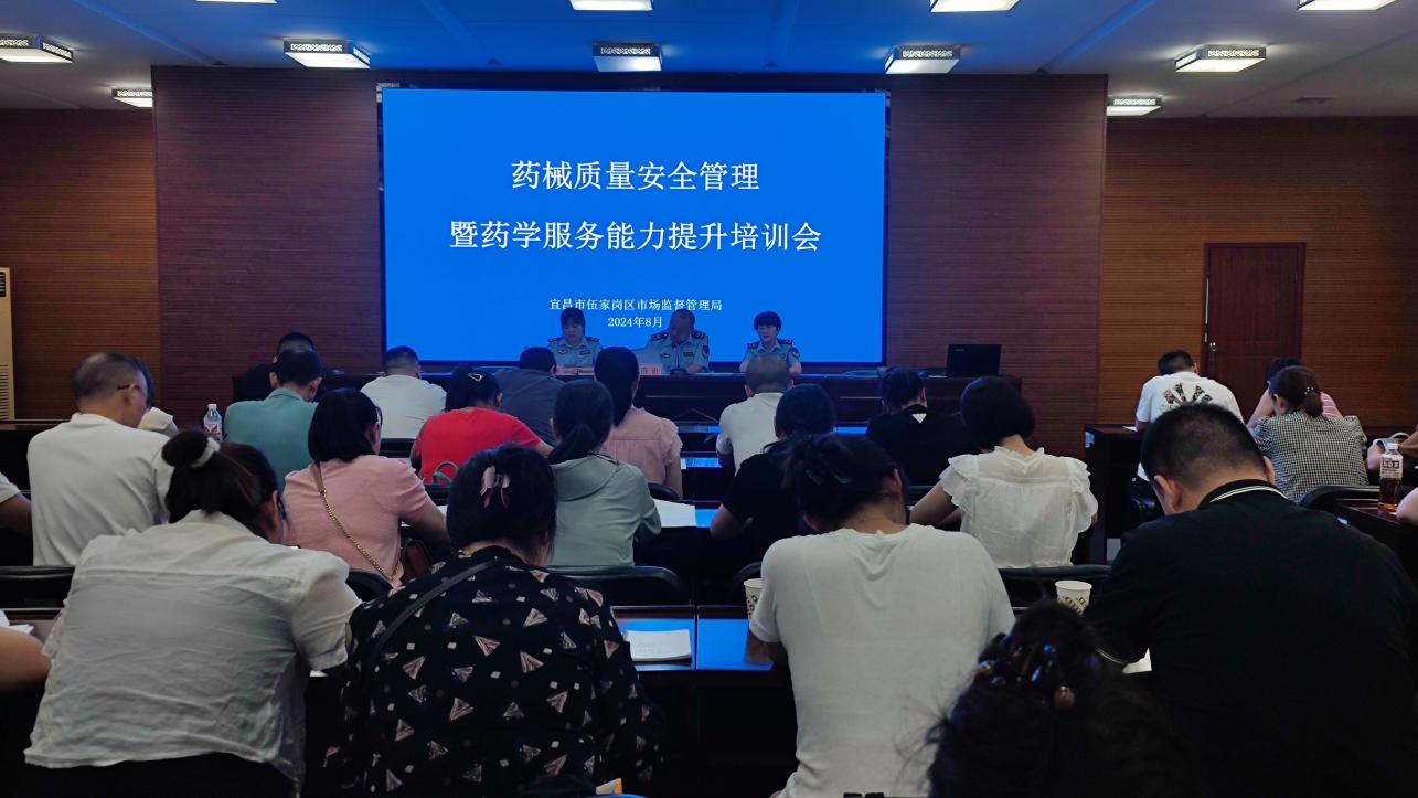为进一步提高药品零售企业质量管理水平和药学服务能力,切实保障广大人民群众用药用械安全和身体健康,2024年8月5日,伍家岗区市场监督管理局举办了药械质量安全管理暨药学服务能力提升培训会议,现场280余家药械零售企业负责人及基层监管所执法人员参会。