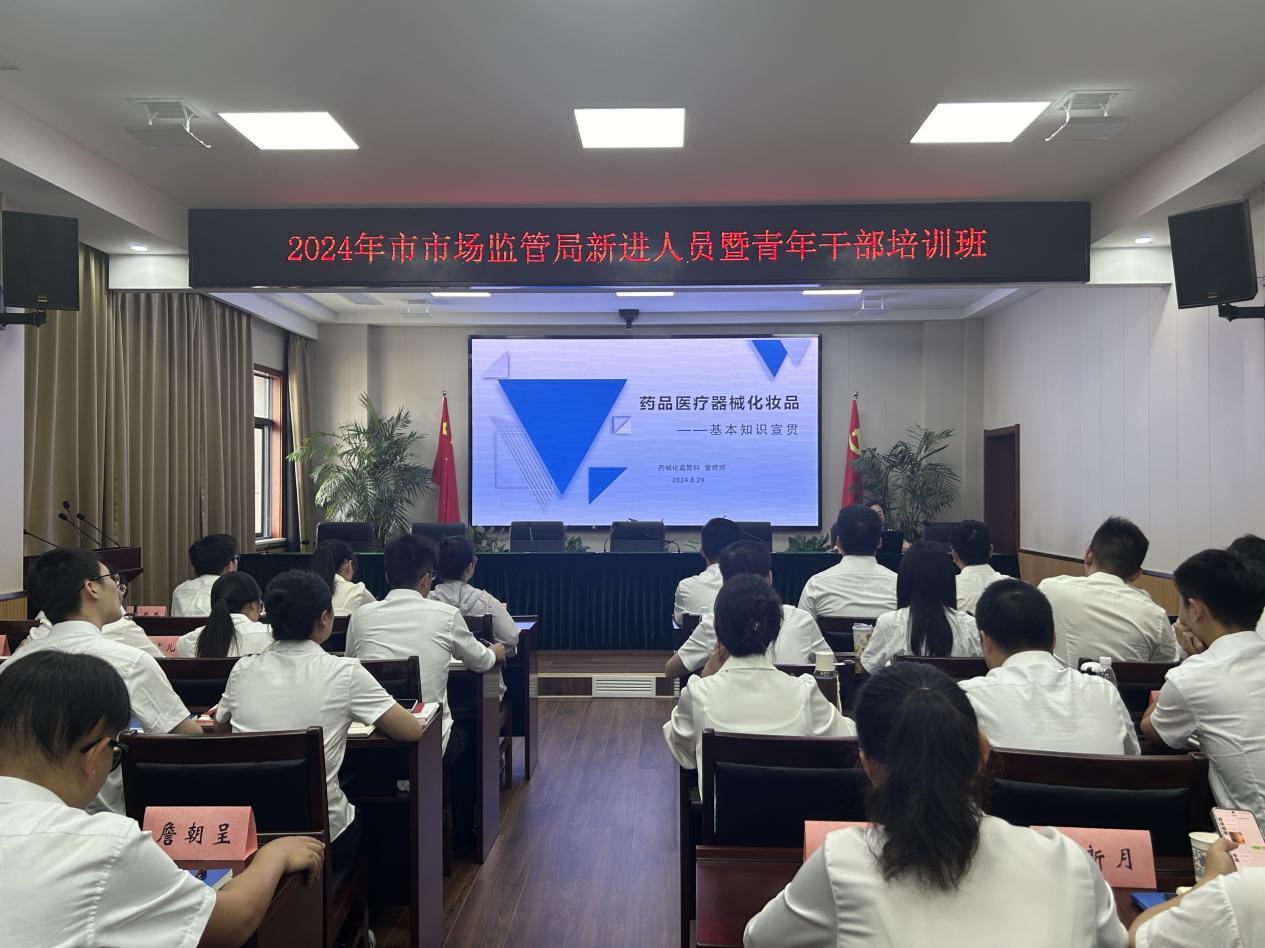 为提升新录用人员的政治素质和业务能力,加快角色转变,8月29日,潜江市场监管局组织开展了2024新入职人员暨青年干部培训,培训时间三天,全系统新入职人员30余人参加。