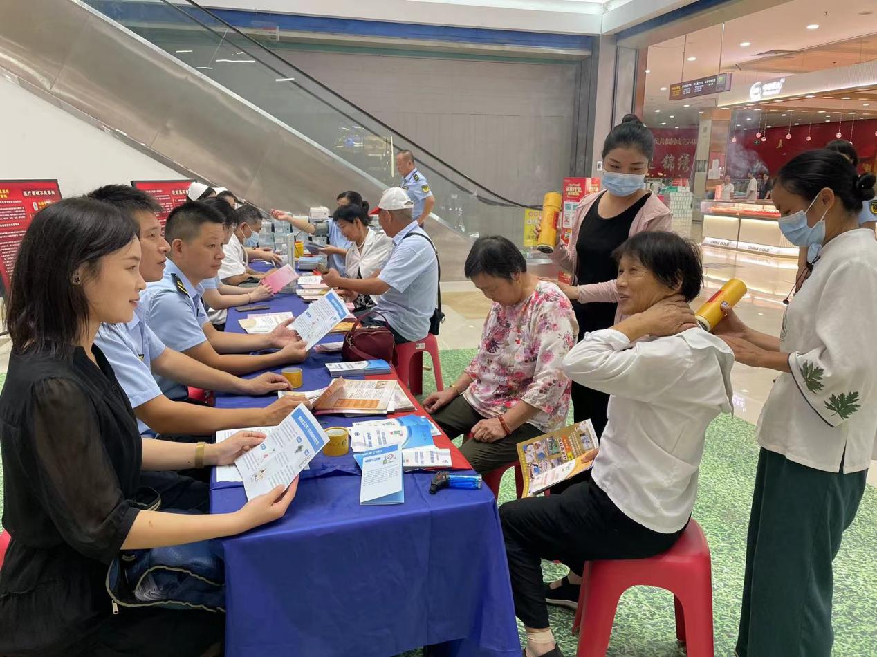 为进一步提升零售药店药学服务能力,提高公众安全用药意识和自我保护能力,9月3日,蕲春县市场监督管理局联合医疗机构、艾灸馆等在棕盛商业广场开展以“药品安全 良法护航”为主题的药品安全宣传周活动,各市监所在其乡镇场同步开展宣传周活动。