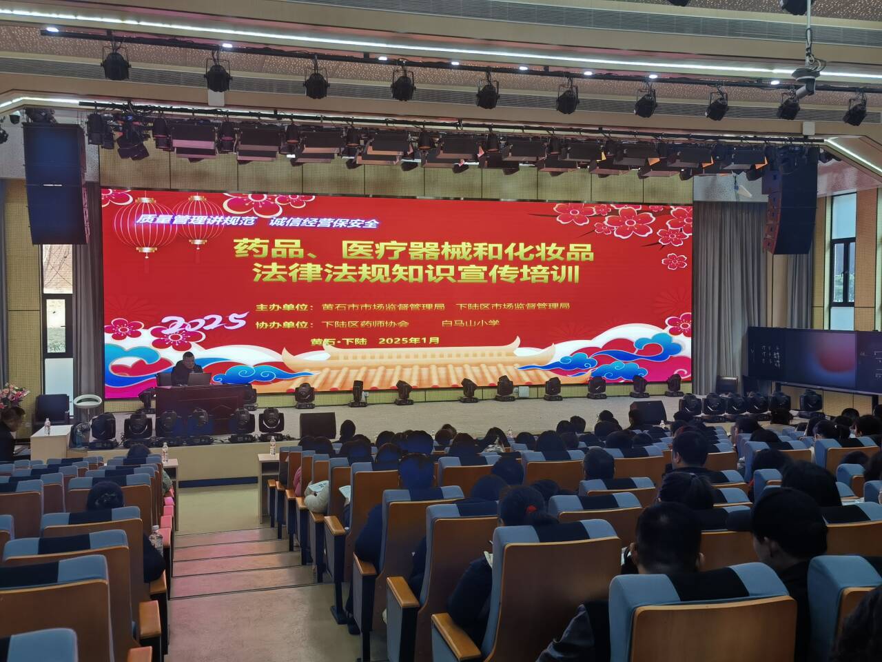 1月21日,黄石市市场监管局针对节日期间药品安全专项检查发现问题,以“质量管理讲规范,诚信经营保安全”为主题,联合下陆区市场监管局组织监管执法人员、各医药连锁有限公司相关负责人及门店从业人员共120余人,开展了药品、医疗器械和化妆品法律法规知识宣传培训。