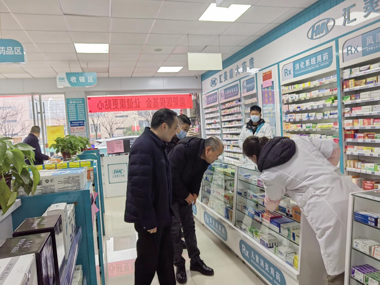 马磊在汇美康大药房连锁有限公司一医院店现场查看了甲流治疗用药、诺如病毒治疗用药、慢性病治疗用药等药品的储备情况,对各相关部门和企业保障群众用药安全,共同营造安全祥和的春节氛围提出要求。