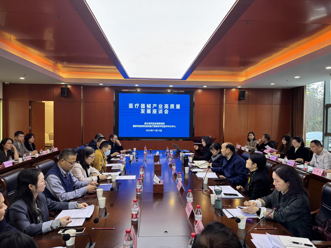 为深入贯彻党的二十届四中全会精神,抢占生物医药科技创新制高点,服务医疗器械产业高质量发展,近日,湖北省药品监督管理局联合国家药品监督管理局药品和医疗器械审评检查华中分中心(以下简称“华中分中心”)在汉召开医疗器械产业高质量发展座谈会。来自湖北省内部分创新医疗器械研发单位、武汉国家生物产业基地建设服务中心和医疗器械产业园区负责人参加会议。会上,省药监局相关负责人介绍了湖北省医疗器械产业发展及监管工作情况,重点通报了湖北省在优化监管服务、保障产品质量安全、推动产业提质增效等方面的政策措施。华中分中心负责人详细介绍了中心职能定位、建设运行情况,对创新医疗器械审评审批政策、检查工作要求及支持产业发展的服务措施进行解读,帮助企业准确把握政策导向、依法依规开展产品研发和注册申报等工作。参会单位代表着重介绍了创新产品研发进展情况及工作遇到的问题。华中分中心、省药监局相关业务骨干针对企业提出的问题,现场答疑解惑、精准指导。此次会议搭建了监管部门、技术审评机构与企业间的沟通桥梁,进一步增进了各方了解,凝聚发展共识,破解发展难题。下一步,省药监局将持续加强与华中分中心及相关单位的协同配合,不断优化服务举措,提升监管效能,为统筹推进湖北省医疗器械产业高质量发展和高水平安全提供有力保障。