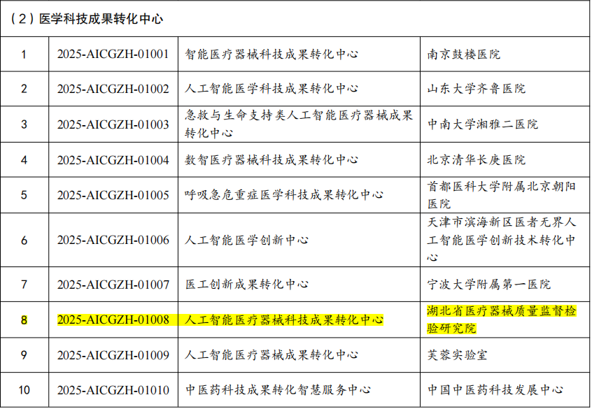 近日,工业和信息化部与国家药品监督管理局公布了2025年人工智能医疗器械创新任务揭榜挂帅入围单位名单,由湖北省医疗器械质量监督检验研究院牵头申报的“人工智能医疗器械科技成果转化中心”项目成功入选。在全国182个申报项目中,该院是唯一入围的医疗器械检验机构,标志着我省在该领域的创新实力与技术支撑能力获得国家层面认可。此外,由该院参与的另外3个项目也一并入围,展现了我省在人工智能医疗器械领域从技术攻关到成果转化的系统性突破。