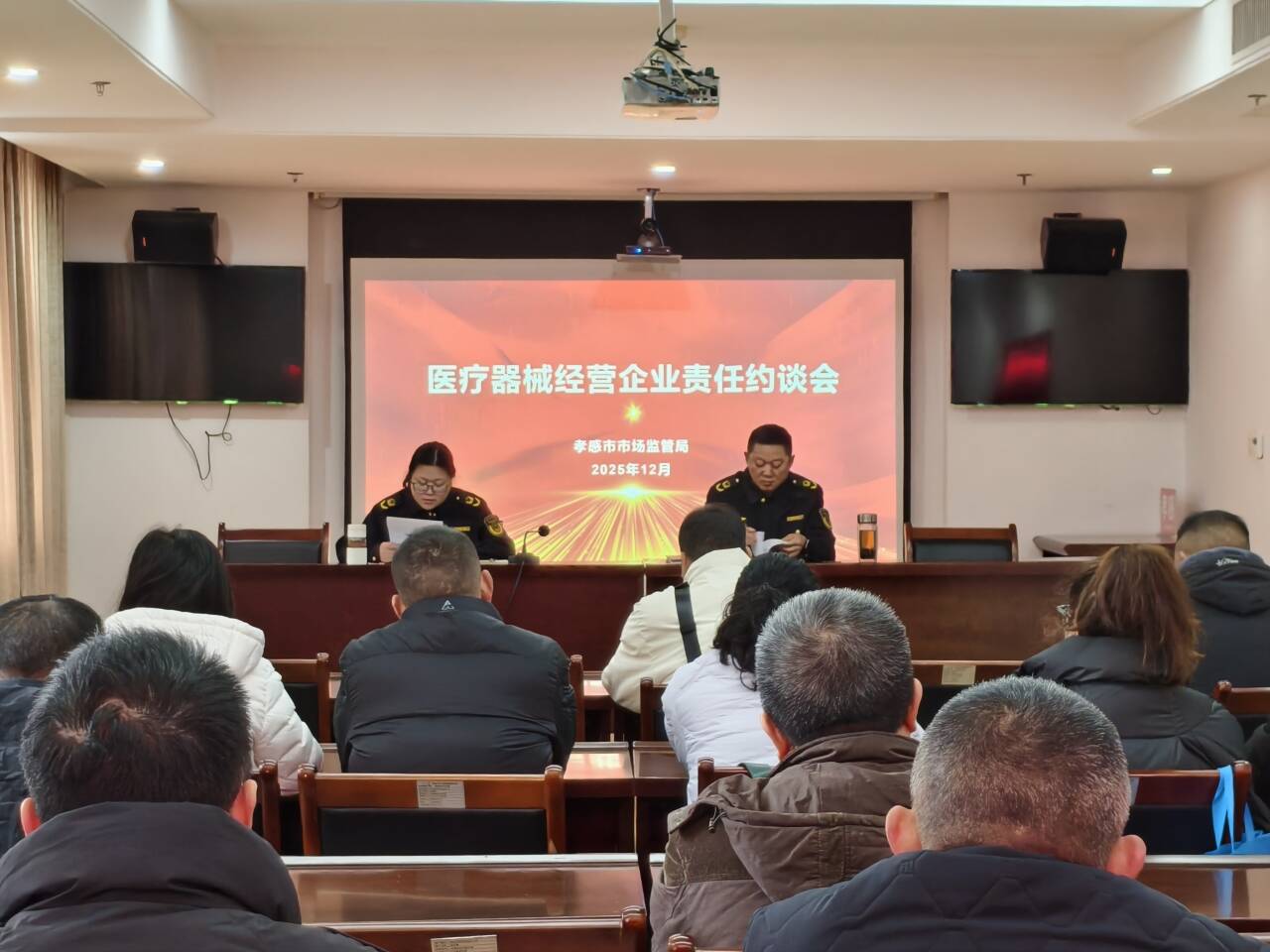 12月23日,孝感市市场监管局依据《孝感市医疗器械经营质量管理评价工作方案》,对全市18家质量管理风险较高的医疗器械经营企业进行了集中责任约谈。