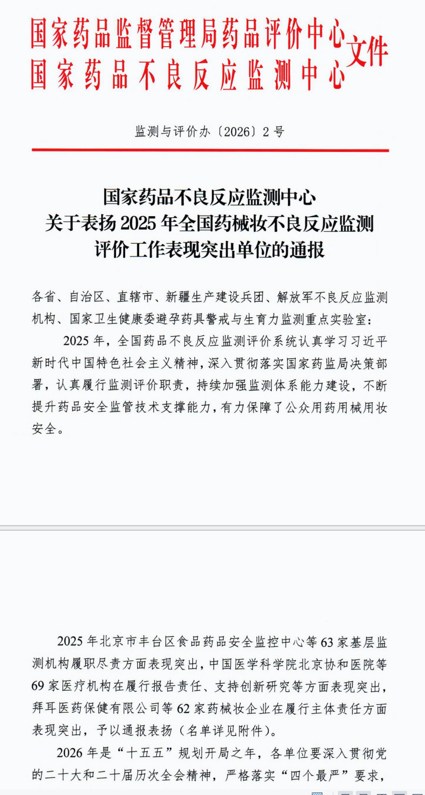 近日,国家药品不良反应监测中心发布通报,对2025年全国药械妆不良反应监测评价工作表现突出的单位予以表扬。荆州市市场主体信用信息中心凭借扎实的监测能力和专业成效,继2021年首次获评后,再次荣登全国榜单。