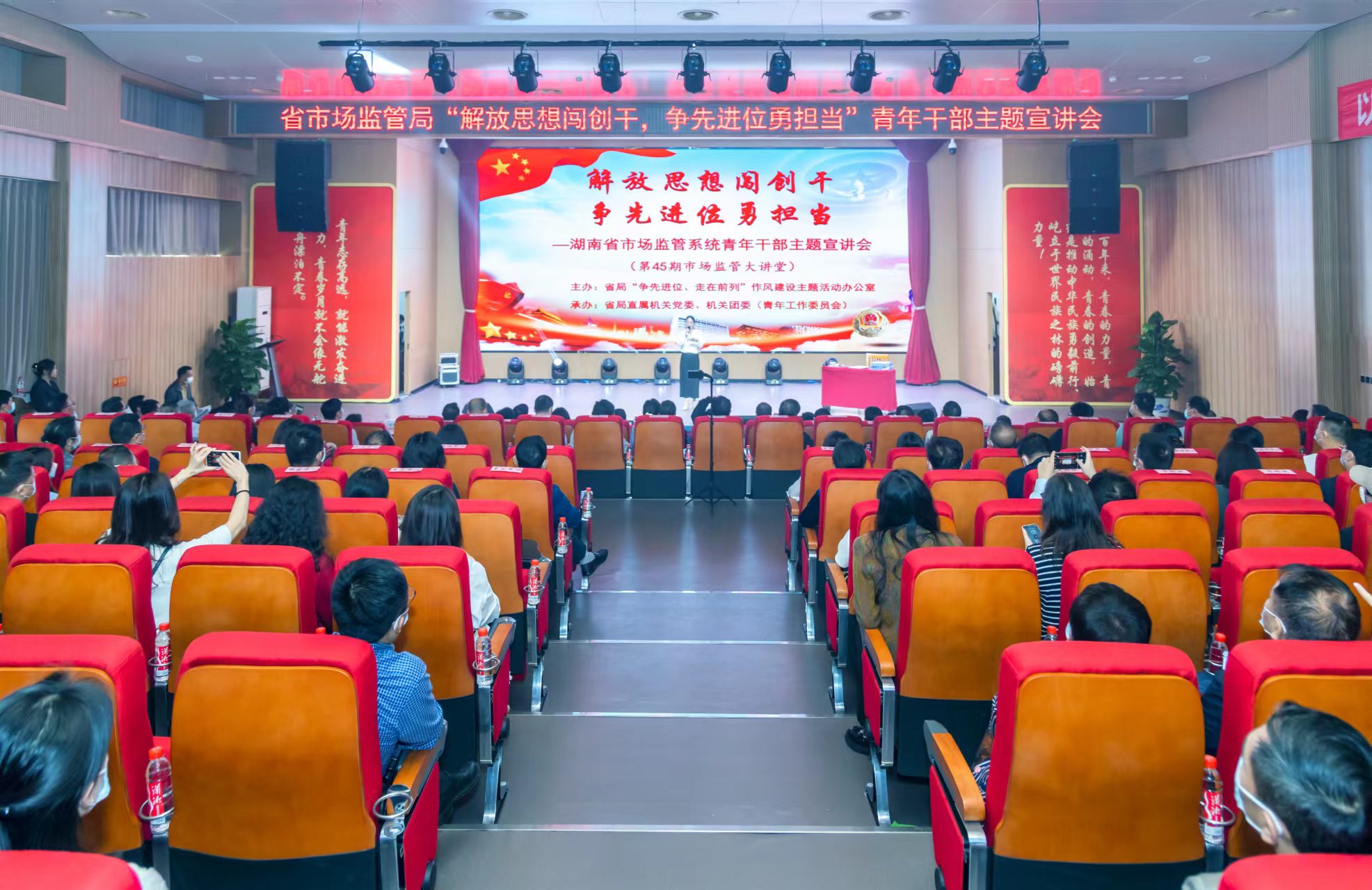 5月18日,省市场监管局举办第45期“市场监管大讲堂”暨“解放思想闯创干 争先进位勇担当”青年干部主题宣讲决赛。省局在家领导,省药监局班子成员,驻省局纪检监察组、省局机关各处室全体干部,各直属单位班子成员,省局青年理论学习小组成员参加活动。