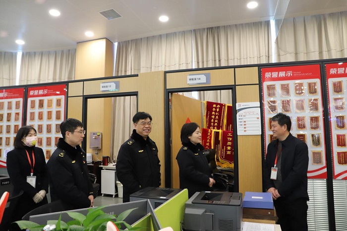 1月28日,新年上班第一天,省药品监管局局长黄东红带队,专程到省政务服务大厅看望慰问药监窗口一线工作人员,送去亲切的关怀和诚挚的祝福,省药品监管局副局长彭旭明、省局法规处、省政务服务大厅有关负责人陪同。