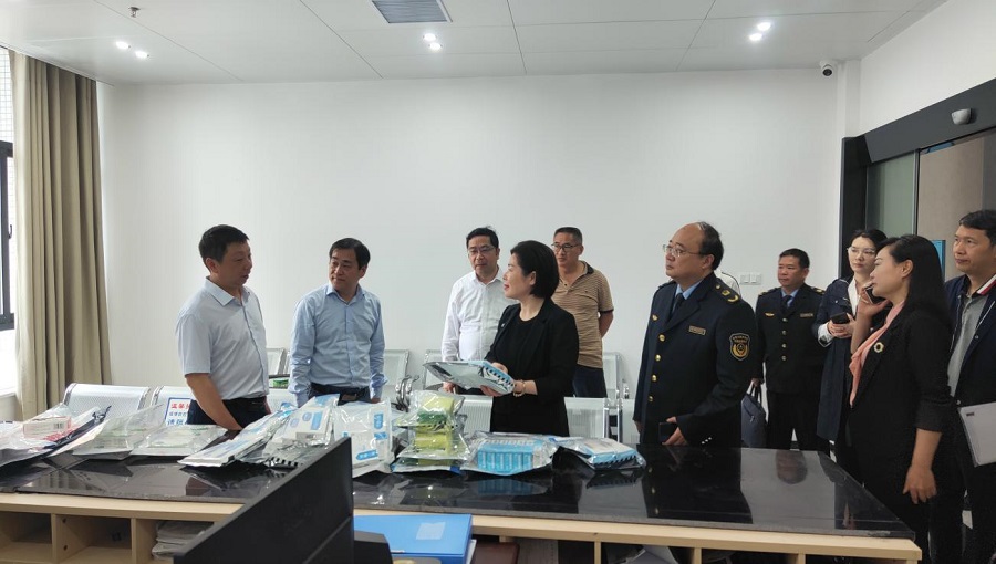 在湘西州和益阳市,黄东红一行详细了解了两地药品检验机构检验检测能力、队伍建设、仪器设备、经费保障和中央、省级专项资金使用等情况,仔细查看了药品留样室、标本室、化学室、微生物室。调研组奔赴基层监管一线,在吉首市市场监管局镇溪分局,安化县市场监管局城南监管所、江南监管所,黄东红仔细查看了基层所办公条件、人员配置、执法装备、智慧监管等情况。