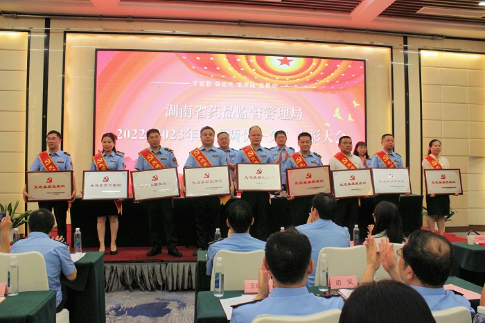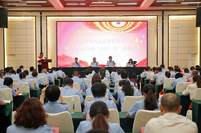 6月30日下午,湖南省药品监督管理局2022-2023年度“两优一先”表彰大会在庄严的国歌声中拉开帷幕。局领导班子成员、二级巡视员、各处室(单位)主要负责人,离退休老同志代表,“两优一先”受表彰的先进单位代表和个人,局机关和院内直属单位干部职工,院外各直属单位领导班子成员,青年理论学习小组成员、青年党员代表共160余人参加。局党组书记秦继红出席会议并讲话,省委主题教育第十五巡回指导组李丁同志出席,局党组成员、副局长覃永忠主持。