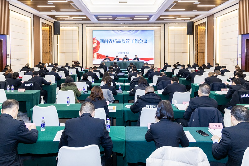 2月27日,湖南省药品监管工作会议在长沙召开。会议以习近平新时代中国特色社会主义思想为指导,深入贯彻党的二十大精神,认真落实中央和省委经济工作会议、省“两会”、全国药品监管工作会议、全省市场监管工作会议部署要求,总结2023年全省药品监管工作,分析当前形势,安排2024年重点工作。省市场监管局党组书记、局长钱俊君出席会议并讲话,省药监局党组成员、副局长覃永忠作工作报告,省药监局党组成员、副局长彭旭明主持会议。