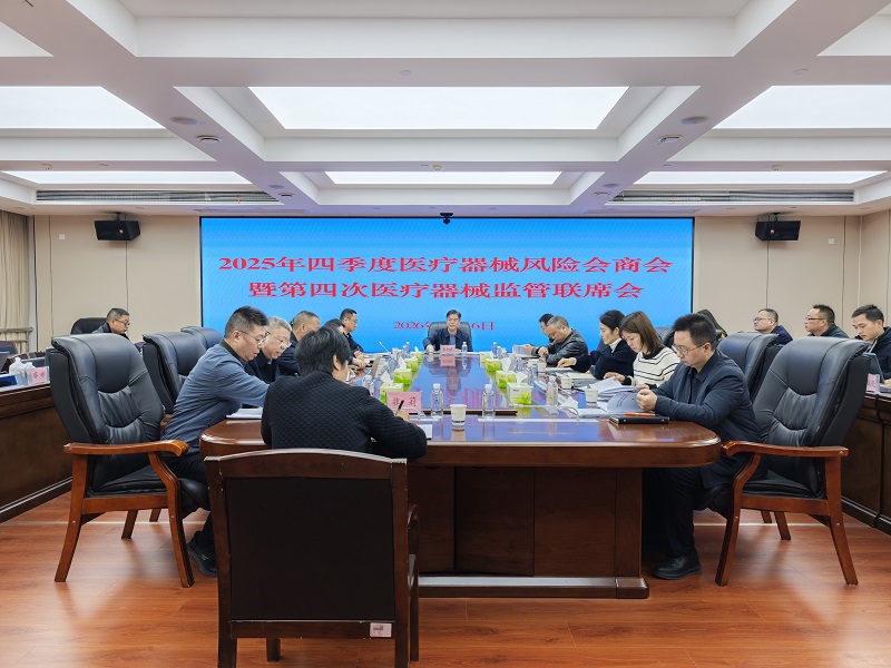 2026年1月16日,省药品监管局召开2025年四季度医疗器械风险会商会暨第四次医疗器械监管联席会。省药品监管局二级巡视员彭旭明出席会议并讲话,医疗器械监督管理处、综合和规划财务处、政策法规处、省药品质量抽检中心、省药品检验检测研究院、省药品审评与不良反应监测中心、省药品审核查验中心、省药品监管局审评核查湘潭分中心等处室(单位)主要负责人及相关负责同志参加会议。